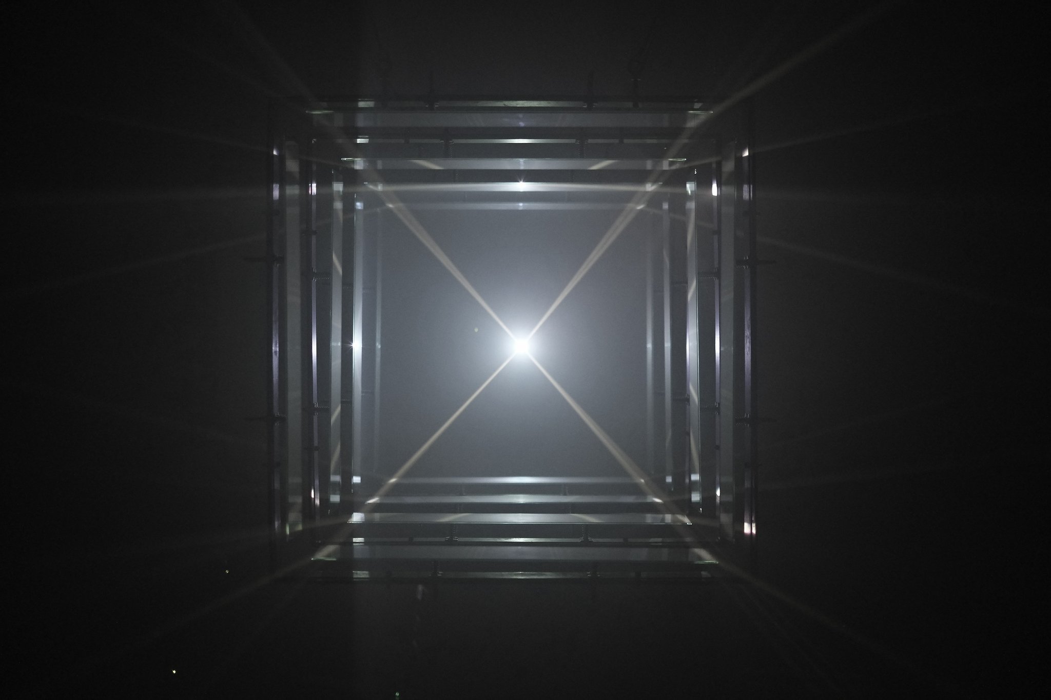 Cortex explores the sense of sight. As our eyes capture light, our mind turns the frequencies of the colours reflected by all objects into electric impulses. These impulses reach our cortex, where billions of neurons are responsible for making sense of what we see. By observing Cortex, the viewer gets the feeling of being immersed in a flow of particles travelling at the speed of light: particles that might turn into delicate reflections - slightly visible - or into violent lightstorms enwrapping the viewer.