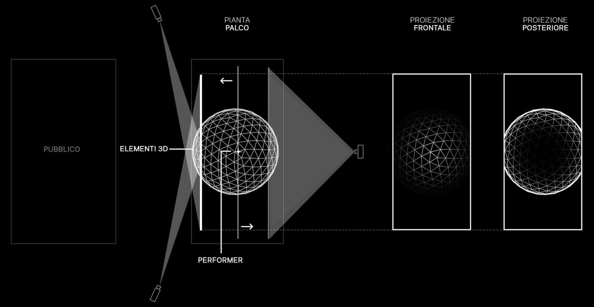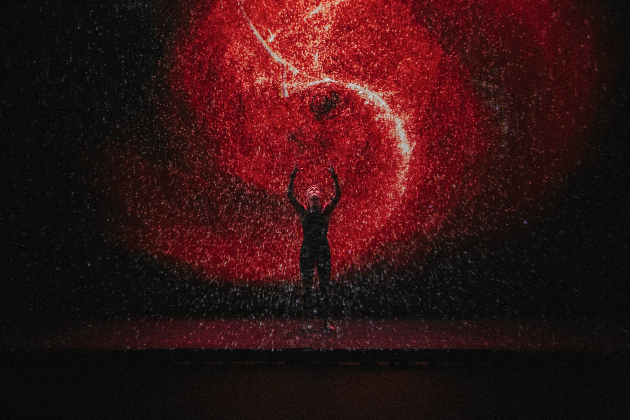 Dökk is a live media performance exploring the unpredictable journey of life: through abstract, evocative imagery, the narration focuses on the subconscious mind where worlds and universes continuously take form and dissolve in different realities. Intending to generate deep emotions and a feeling of affinity and connection, the performance wants to reflect human existence and its profound complexity, in its continuous research of balance between light and darkness.