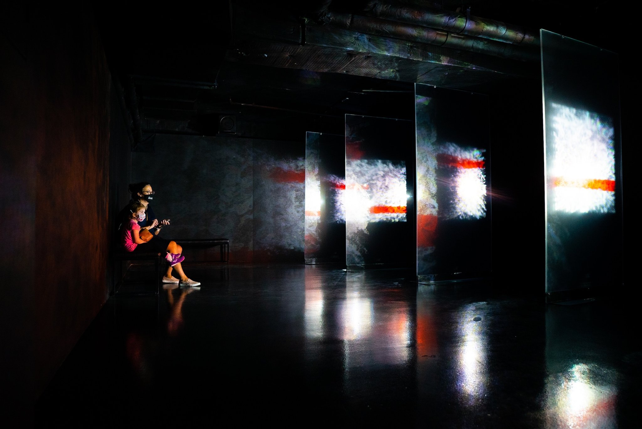 Fragile draws on scientific data from the Society for Neuroscience, reworking this information to reveal how external interactions shape our nervous system and, in turn, influence the way we connect with the world around us. In order to achieve this, we developed an artwork composed of different digital representations, branching into 5 screen projections. At the same time, a real-time algorithm constantly collects tweets and performs a prediction of the stress associated with each sentence. The values retrieved act as a global stress value for the community and are used continuously throughout the installation to interact with the audio-visual content.