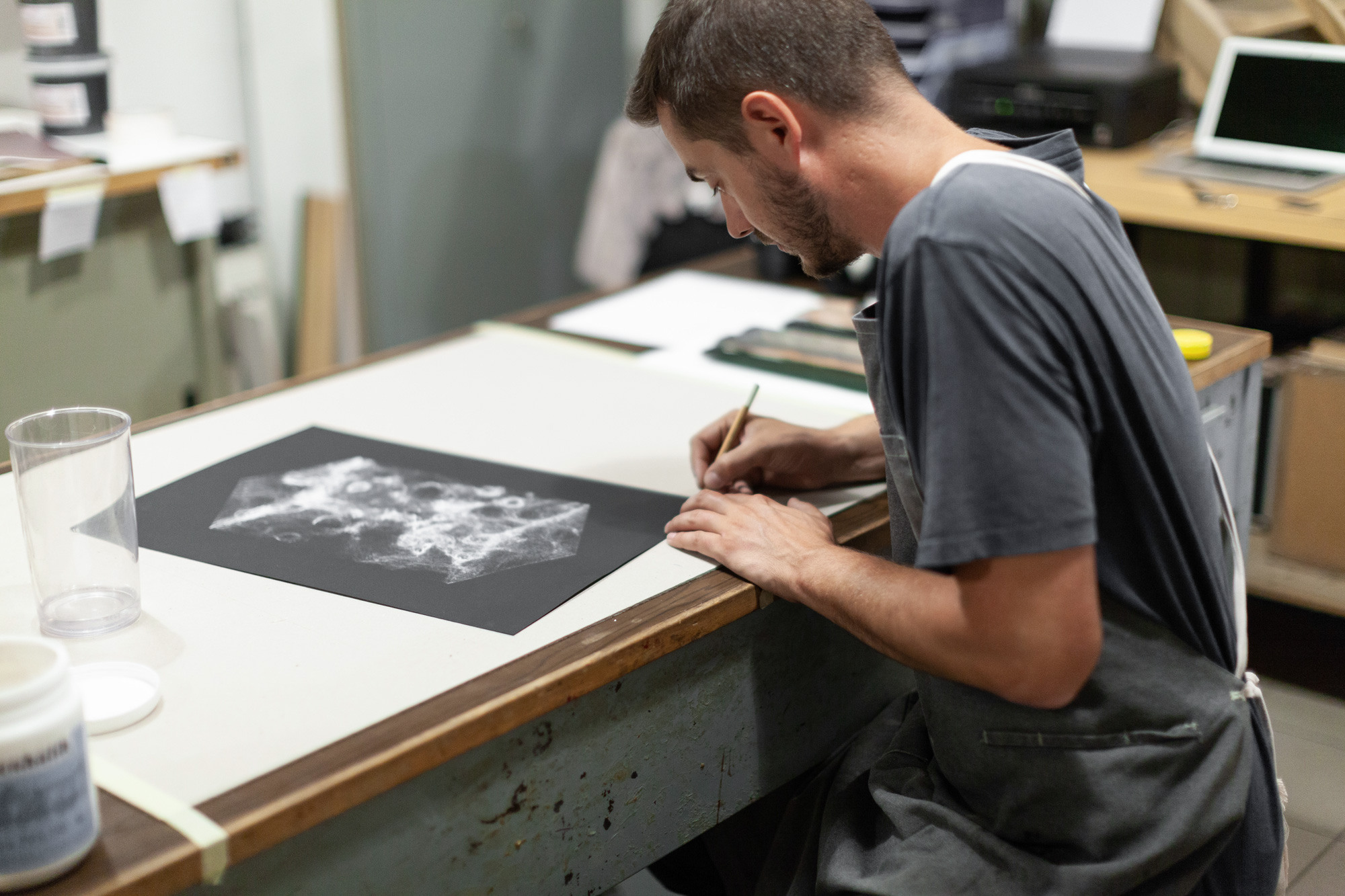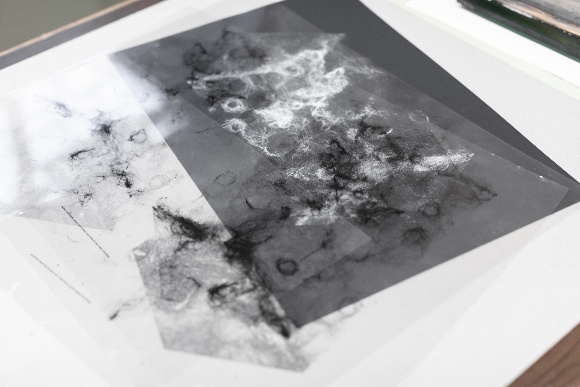 Eventually, the image was broken down into four layers of printing using three whites of different intensities.