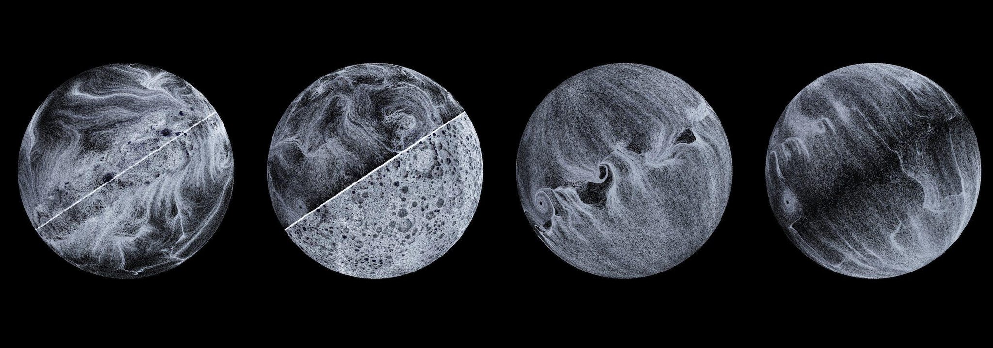 For both visuals and sound design, the initial phase involved creating a structure that could reflect and specify the sentiment of each section. As an initial inspiration, we focused our attention on the lunar phases - New Moon, Crescent, Full Moon, Waning Moon - and the satellite’s movements in relation to the Earth.