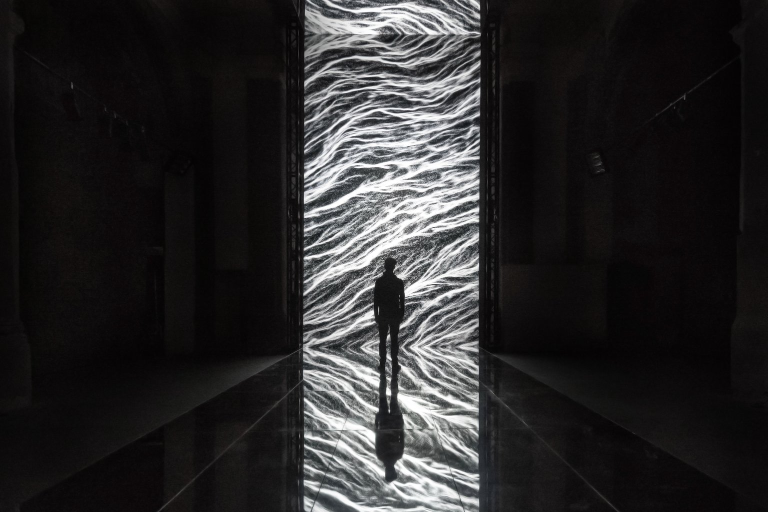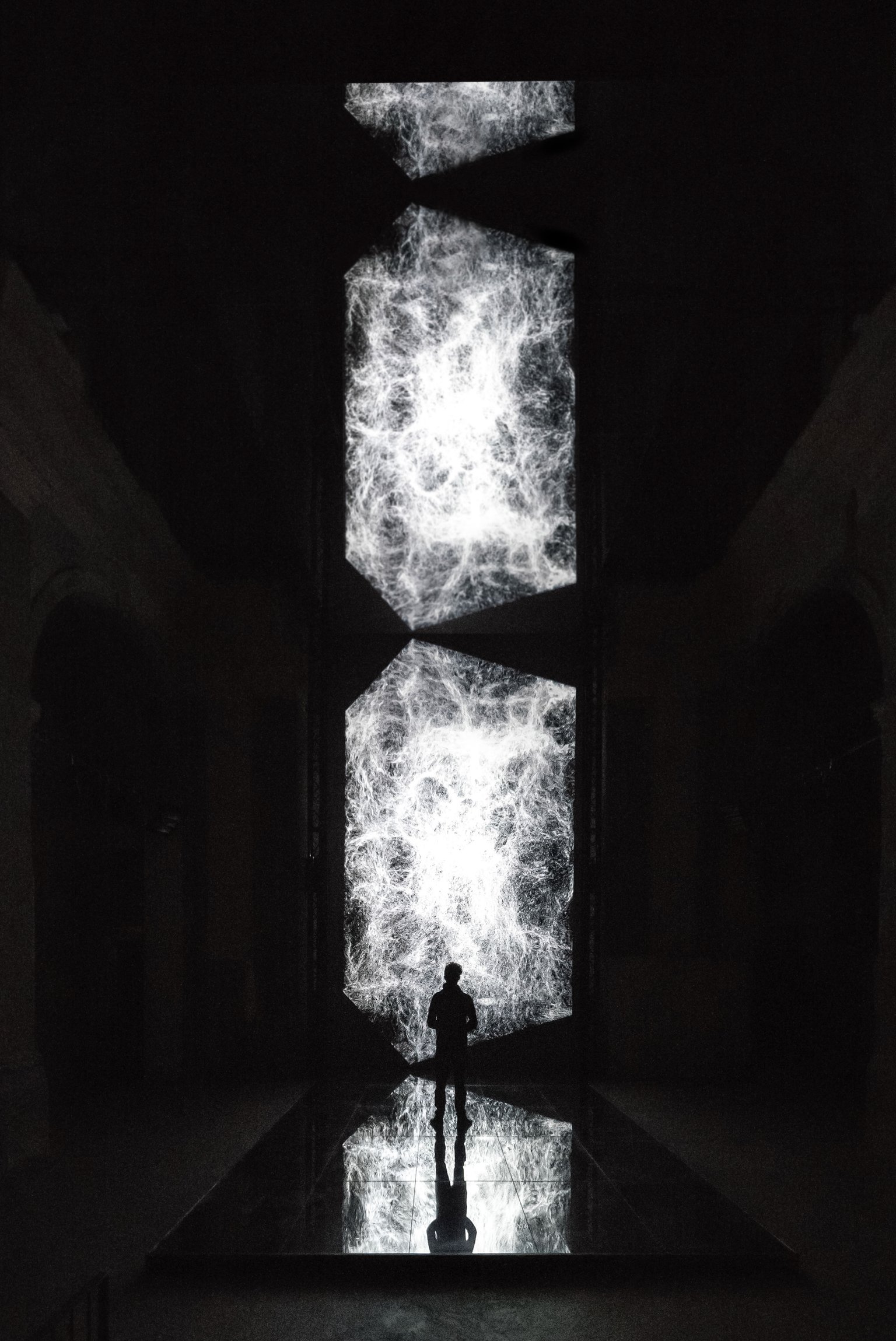 Multiverse is an audiovisual installation that explores the potentially infinite evolution of universes through generative visuals and sounds. Inspired by the theory of the so-called ‘multiverse’, formulated by the American theoretical physicist Lee Smolin, the work builds on the idea of an interconnected and infinite system of universes that coexist outside our space-time. With this focus, the installation weaves together a succession of real-time generated digital paintings, reinterpreting the eternal cycle of death and rebirth of parallel universes.
