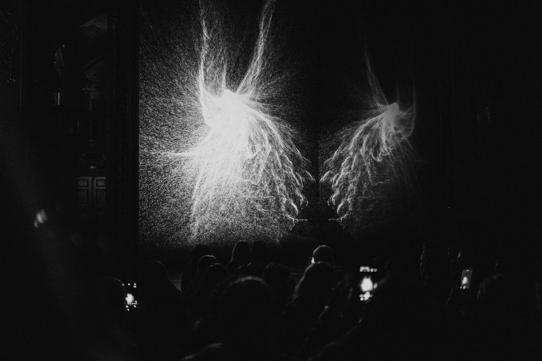 Multiverse .pan is one of the very first adaptations of Multiverse. This installation has been conceived with the goal of preserving the system of mirroring surfaces that characterized the original installation, but in a slightly simpler setting: instead of hanging the mirrors above the vertically-shaped projection, for Multiverse .pan the reflecting surfaces are installed on the sides. Creating a recess, an area that engulfs the viewers, the installation also produces a sense of immersion in the space, also allowing for a stronger, more defined sound design. Despite the different setting, the ultimate goal of the narration remains the same: enhancing the perception of reality and attempting to encompass the surrounding environment, suggesting an expansion beyond the physical boundaries of the venue, projecting itself and the observers into an infinite void.