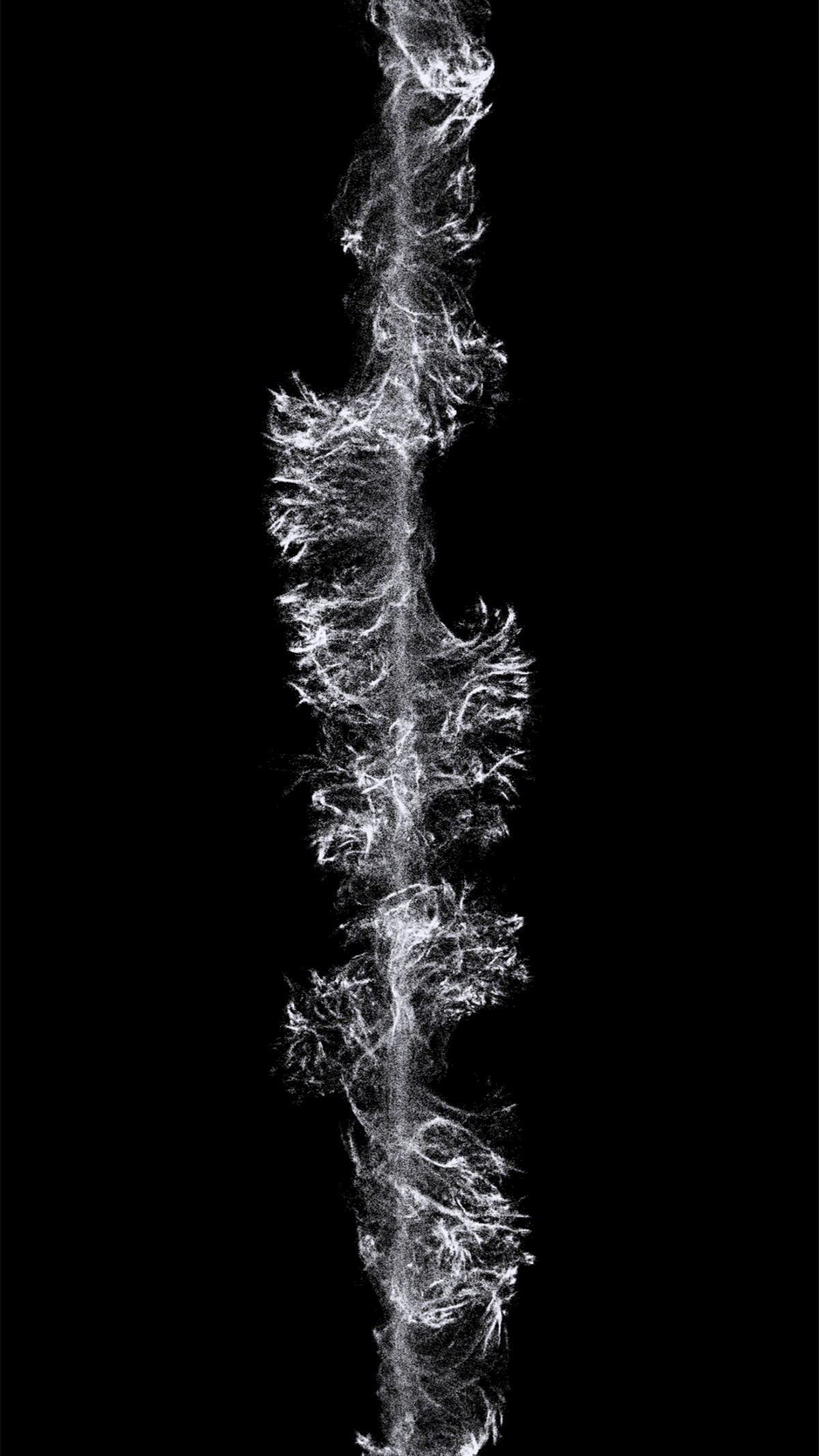 Just like the original visuals of the piece feature a very dynamic and large amount of particles, the shape featured in Multiverse [Solid] comprises 2.174.045 particles. The visualisation was originally created with openFrameworks, and then rendered as a 3D interactive point cloud.