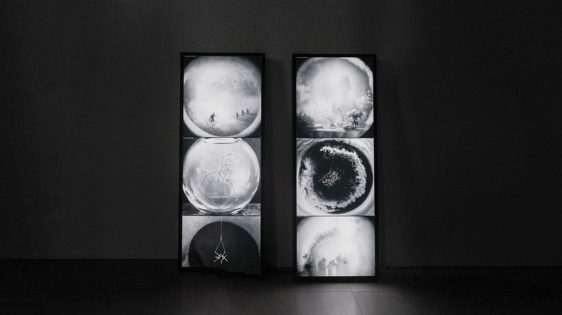 These pieces advance the research initially started on the occasion of fuse*’s solo show at Fondazione Alberto Peruzzo in Padua. In that exhibition, the sacristy featured various smaller pieces designed to help visitors have a deeper understanding of the work's concept and research. Among these were 30 plexiglass prints, each displaying frames from the dreams featured in Onirica ().