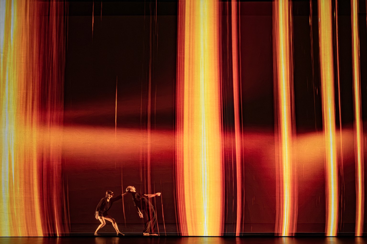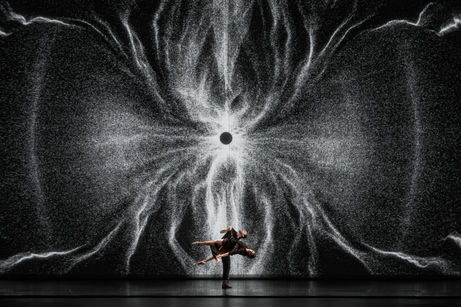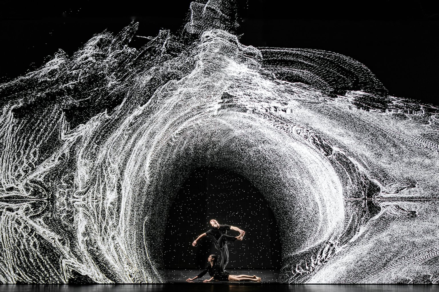 As the final chapter of a trilogy, Sál builds upon the narrative threads established in the two previous live performances, Ljós (2014) and Dökk (2017). Ljós (“light”) explores the theme of birth, “coming into the light”, while Dökk (“darkness”) delves into the concept of interdependence, revealing how each element is inevitably connected to the others in a dynamic balance. In Sál, the focus shifts to the horizon, to the boundary of human life, embracing the notion that everything is in a state of constant transformation, that everything is impermanent.