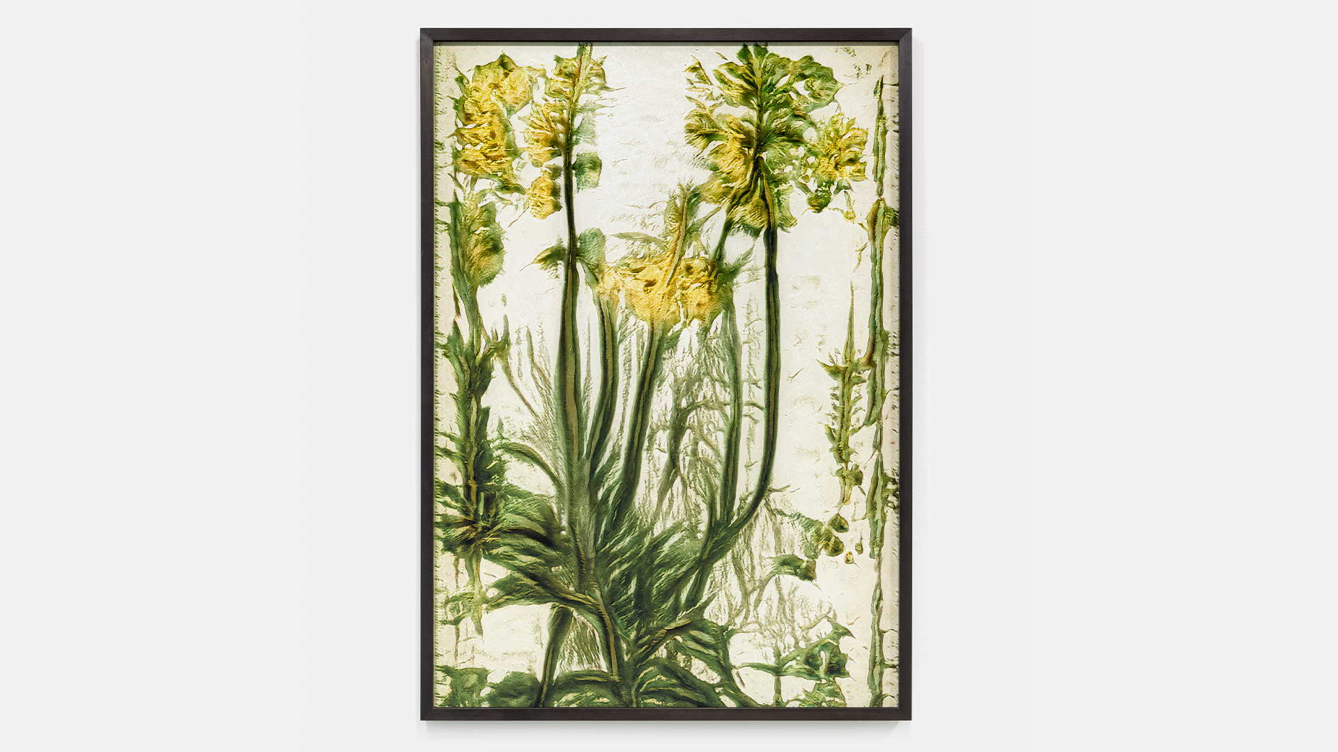 The creative process used transfer learning, improving the network efficiency of the machine learning system by reusing information from previously learned tasks. The result is a series with more abstract features, denoting higher levels of flexibility and distance from the botanical subjects for the final piece.