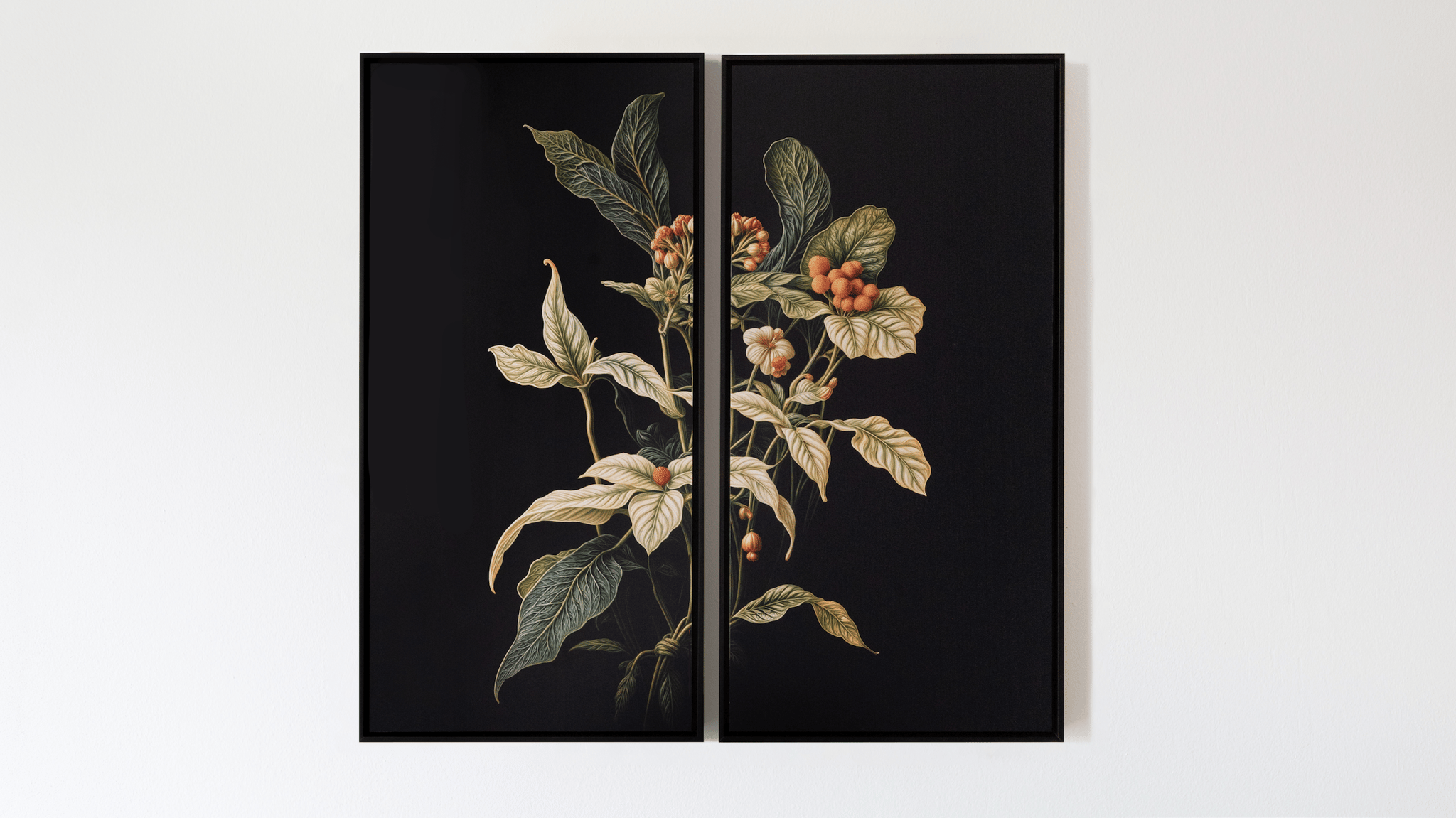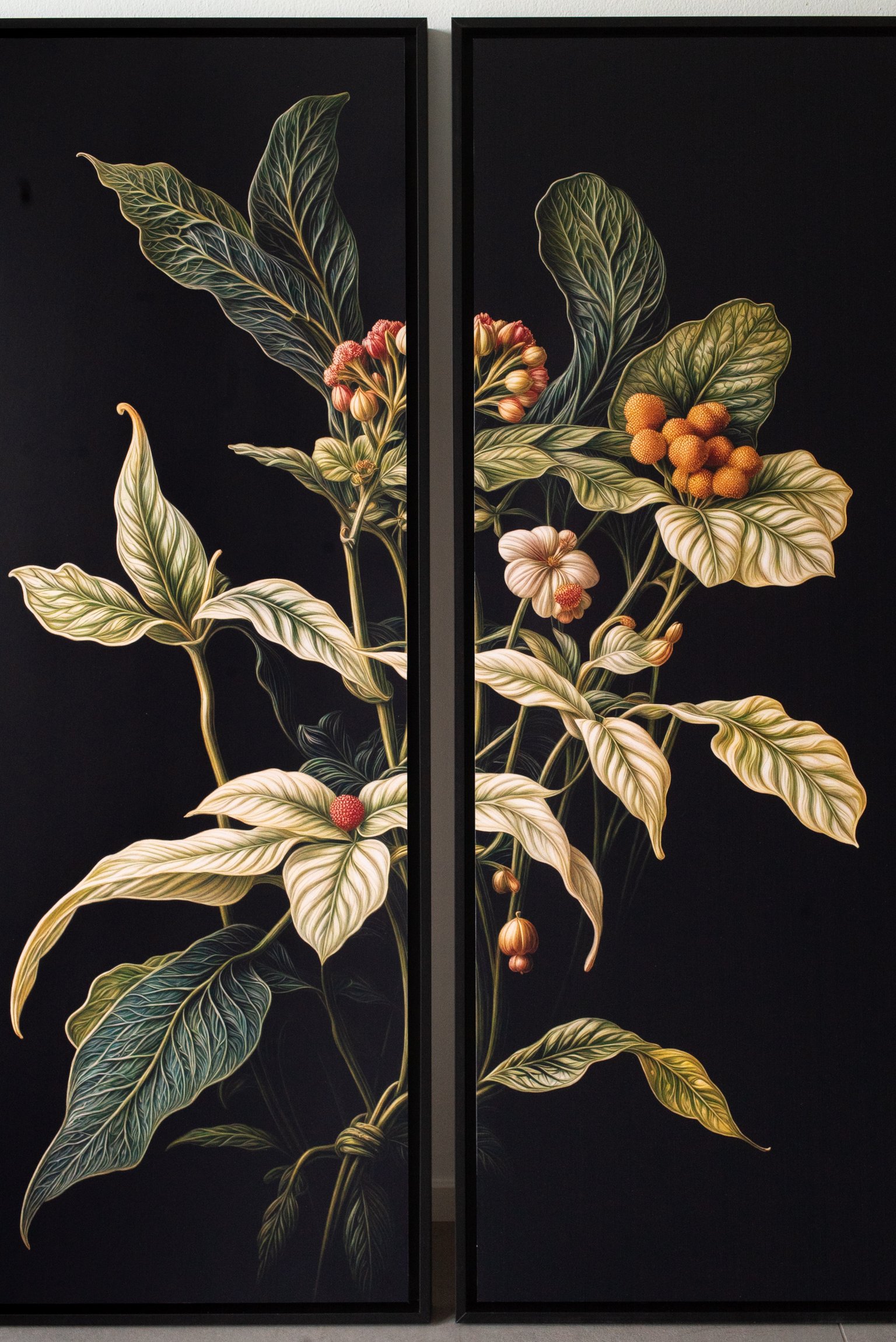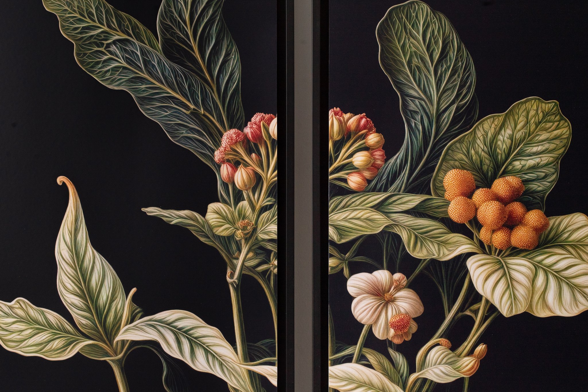 The work has been produced using laser printing on Fujicolor matte paper. This technique allows for a deep, velvety black background that eliminates glare and enhances the vibrancy of the botanical forms. The result is a print that maintains the visual depth and conceptual richness of the original moving image, while offering an intimate, contemplative encounter with this imagined fragment of natural history.