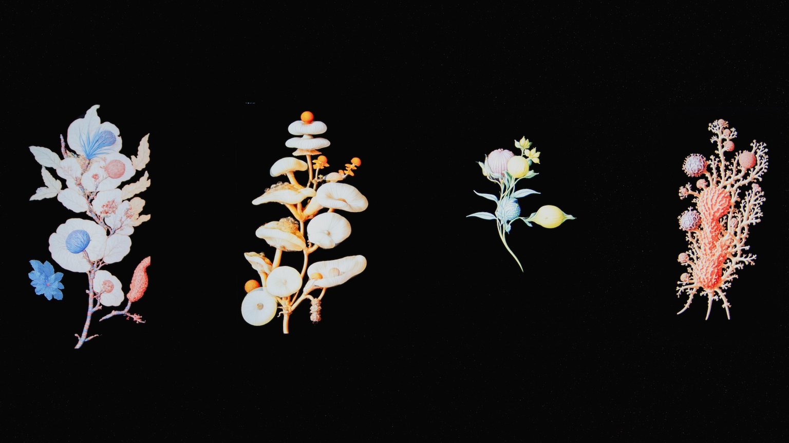 Unseen Flora .morphos IV builds upon the foundation of the series, which features synthetic botanical illustrations created by fictional yet entirely plausible botanists. In this iteration, these speculative visions find their place on the digital canvas, where they continuously morph between various forms and shapes. In this case, the ever-shifting tendency of nature, which evolves and remains in a continuous flux of change, finds its application to fictional flora that only appears unreal due to its unfamiliar shapes.