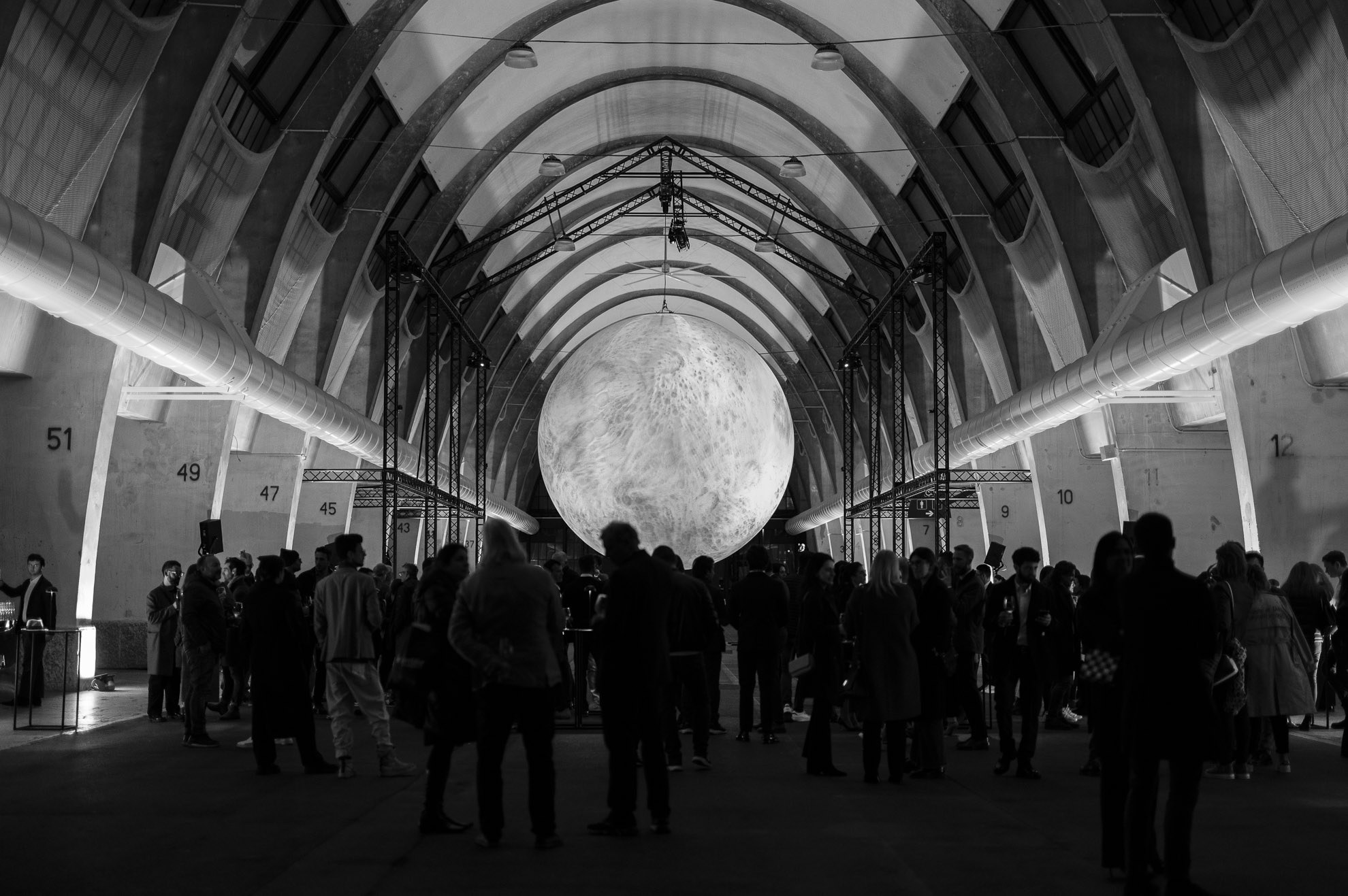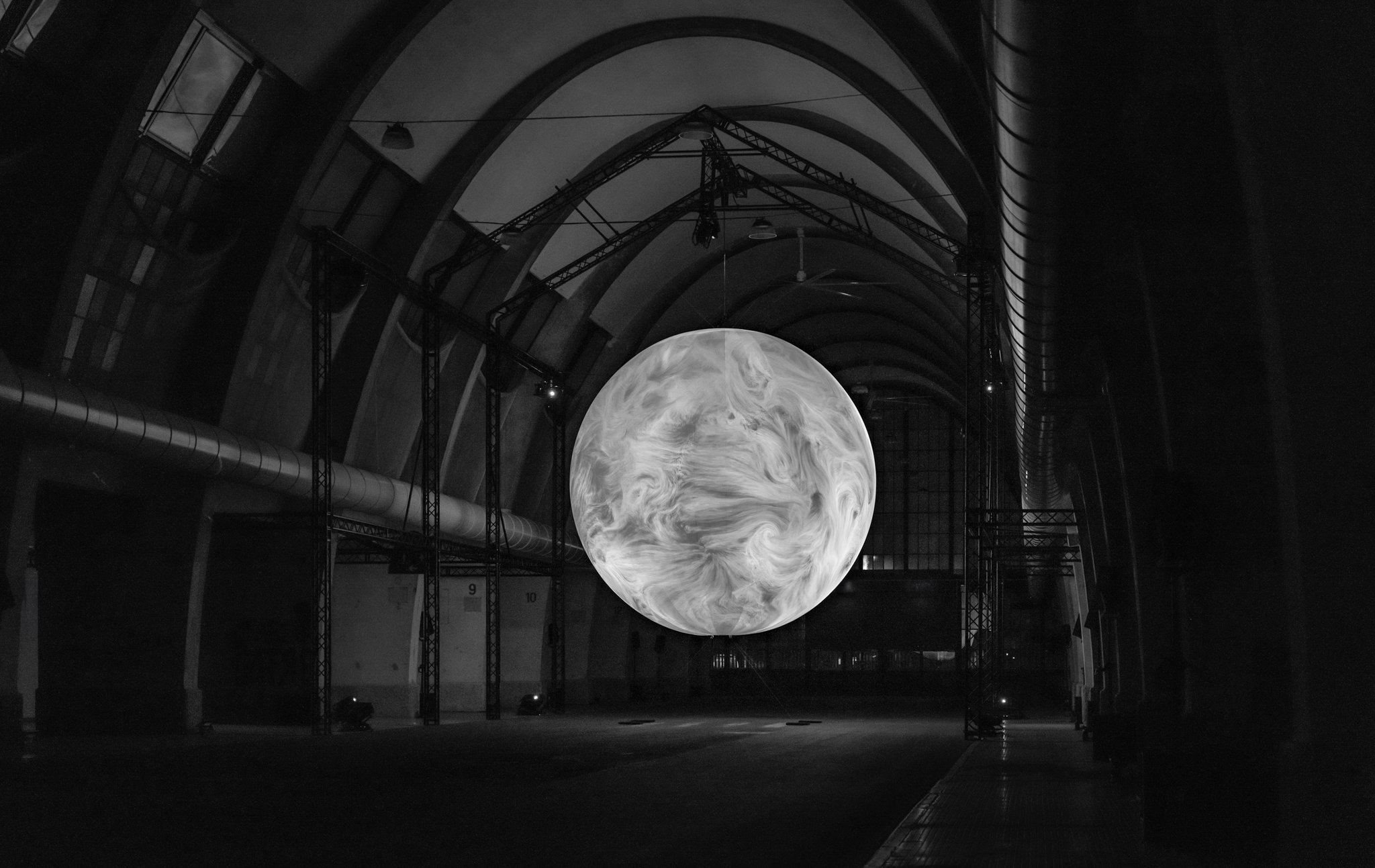 Luna Somnium was first installed in the Gazometro in Rome, hung to the metal structure of the building and suspended in the air. In this case, the structure of the building is fundamentally different, developing in length, not in height. Moreover, architectural assessments of the space excluded the possibility of hanging the inflated sphere to the parabolic vault, making an additional structure necessary.