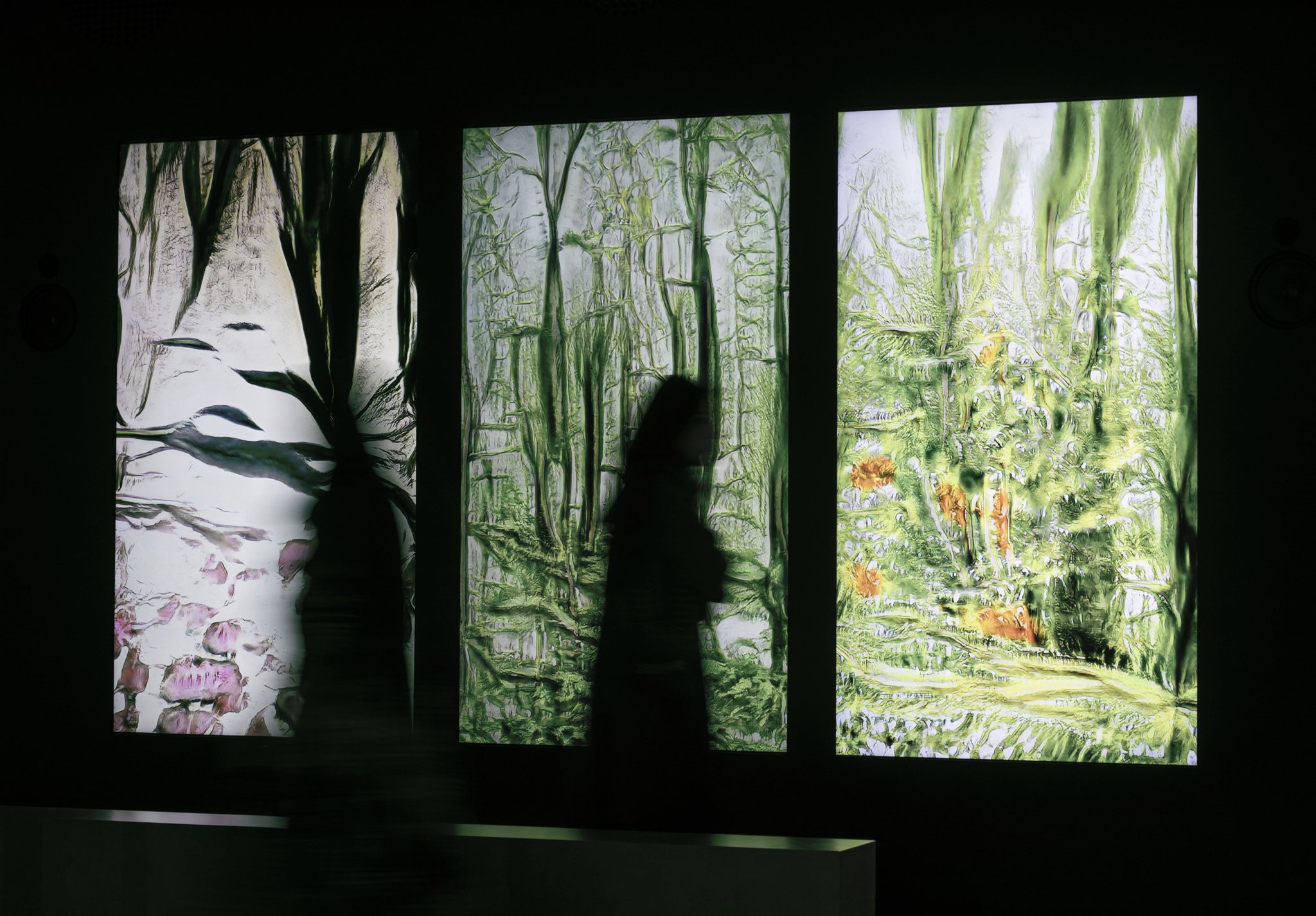 The exhibition reflects on how our understanding of time—past, present, and future—is constantly reshaped by collective narratives and individual experiences. It examines how the future is influenced by the interplay of memories and current perspectives, and how innovative technologies challenge and redefine our concepts of time. Artificial Botany in particular delves into this concept in its exploration of the ever-changing morphing of botanical shapes, on canvases that bridge the world of nature through the eyes of the machine. In particular, the concept of time is particularly important, as the work highlights with unnatural speed the constant movements and change of shape of botanical elements.
