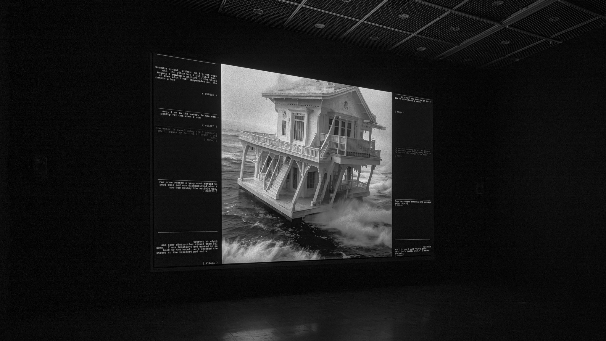In 2024, Onirica () opened its year of touring as part of the exhibition “Hello Human!” at Museum of Contemporary Art in Taipei (TW), curated by Keith Lam and Escher Tsai with whom we had already had the pleasure of collaborating. The exhibition puts together the practices of 16 international artists to investigate that liminal boundary between AI and human being, speculating about their present and potential future relationship. Onirica () was exhibited together with works by Morehshin Allahyari, Mario Klingemann, Daito Manabe, onformative, Anna Ridler, and others.