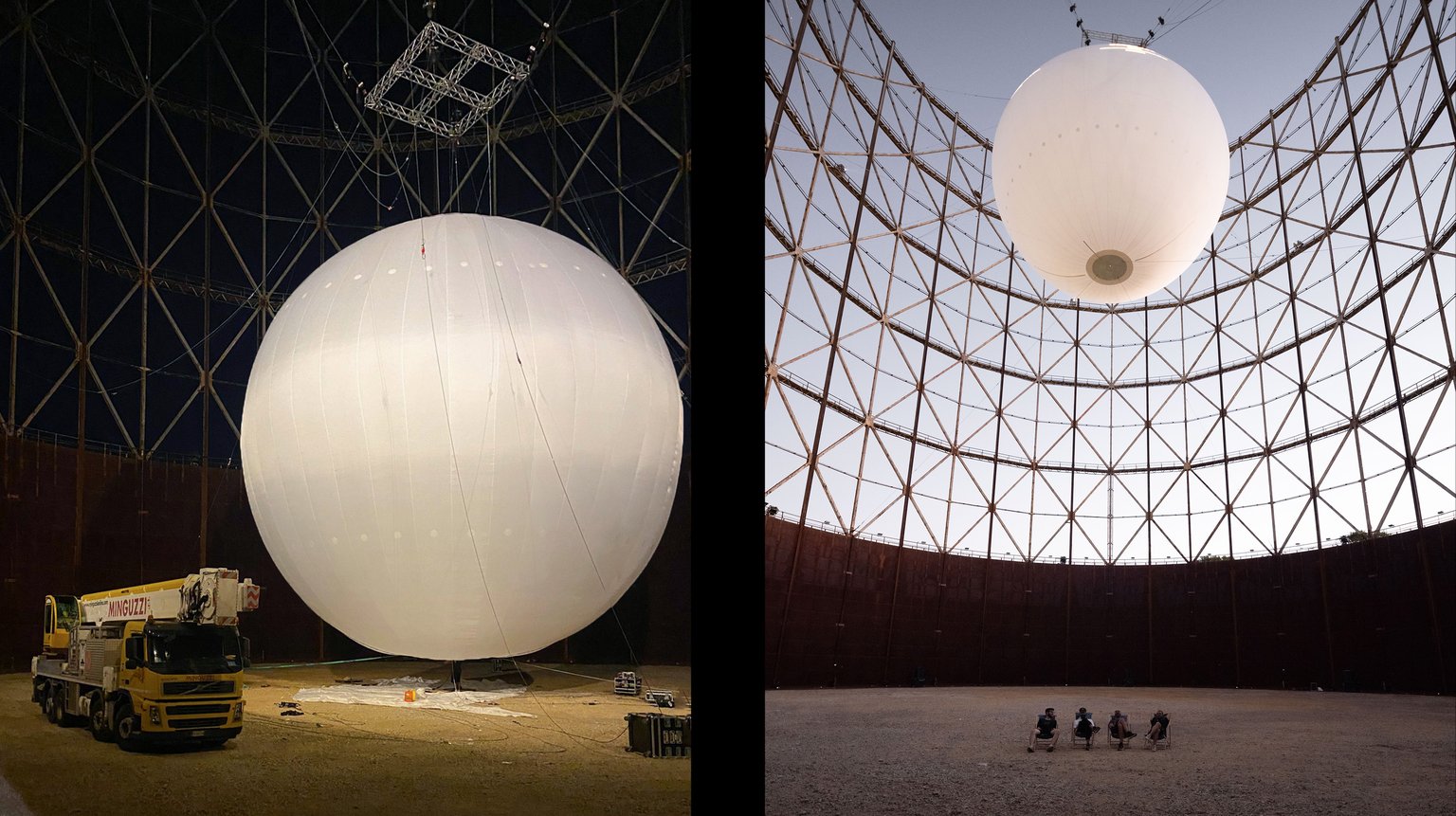 Despite the audacity of the proposal, the installation immediately focused on placing an inflatable structure in the centre of the Gazometro. This choice struck us for its evocative and emotional power: initially envisioning a static inflatable sphere symbolising an abstract reference to the moon, we later concentrated on the development of the immersive experience, gradually outlining all the narrative elements that would shape the final experience.