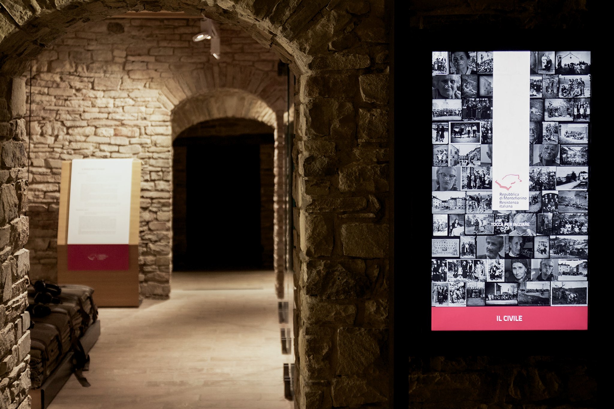 The Museum of the Republic of Montefiorino and the Italian Resistance was created to perpetuate and modernise the memory and legacy of the struggle for liberation of the territory. It features a modern exhibit path where the history of the town gets told and visualised through different installations and technologies, ranging from audiovisual pieces to interactive maps and sound installations. Despite its modernity, the request was to remain sensitive to the uniqueness of the venue (a mediaeval fortress) and the historical significance of the site (the free zone of 1944) where the Museum is located.